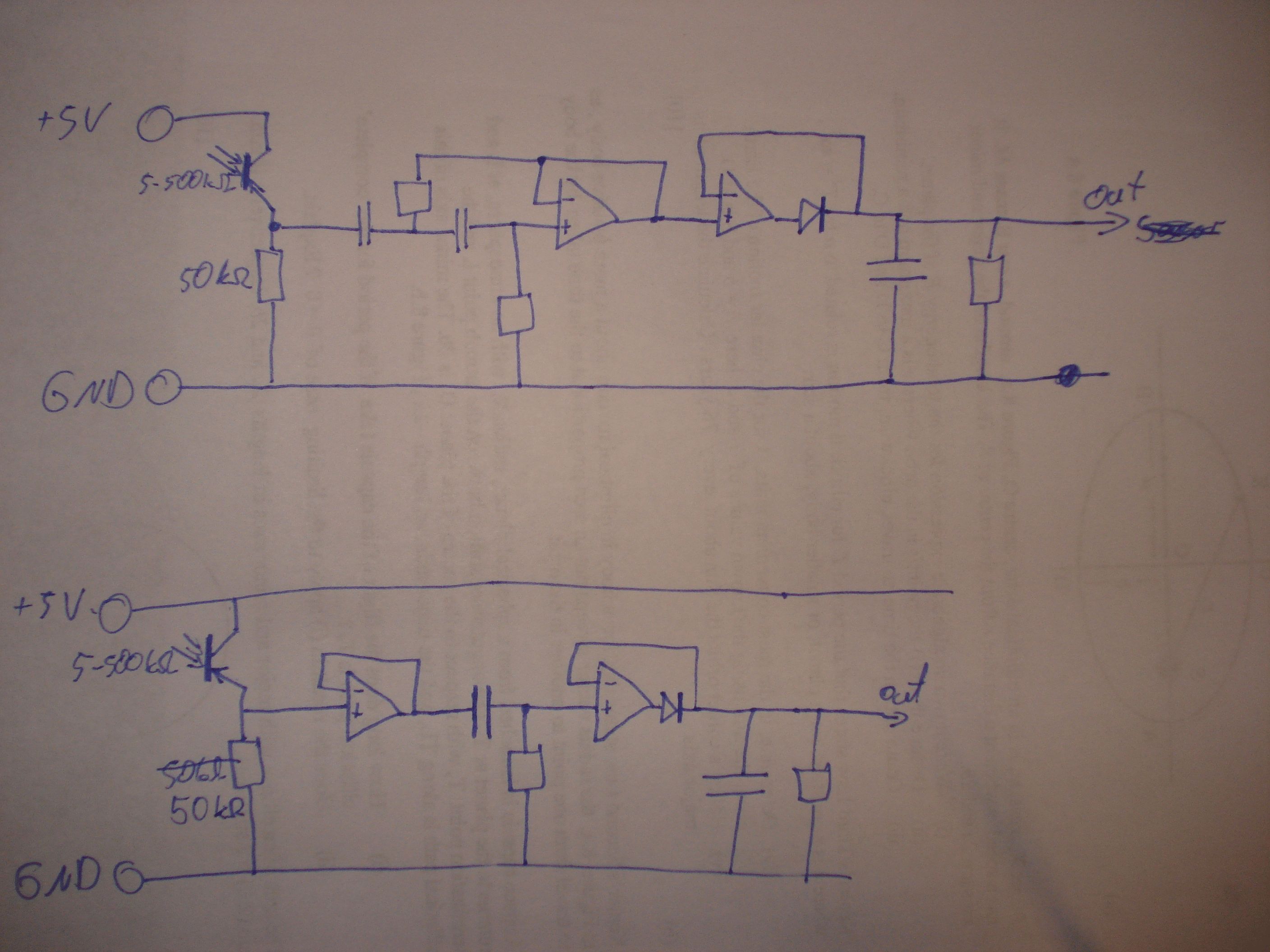Danke für die Antworten. Wenn ich das richtig verstehe, geht das also nicht wie ich mir das vorgestellt habe also alles in einem. Ich hab mal schnell den Vorschlag mit dem Sallen Key aufgezeichnet. Das ist die obere Schaltung. Die untere ist mein Favorit. Man spart sich durch den Sallen Key nichts und ich habe keine Ahnung wie man das berechnet. Funktioniert das so oder gibts irgendwas zu meckern oder Verbesserungsvorschläge?