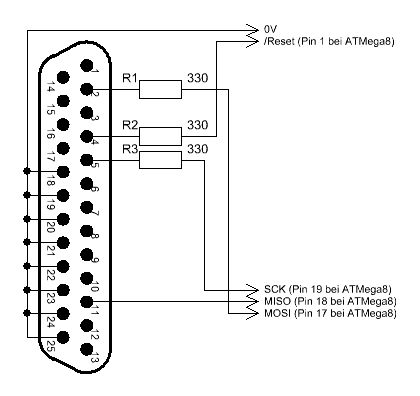 Guten Tag, Ich habe mir einen Atmega8 gekauft und die Schaltung auf http://www.dieelektronikerseite.de/uC%20Ecke/Lections/Matrixanzeigen%20-%20LEDs%20in%20Reih%20und%20Glied.htm nachgebaut. Als ich dan gemäß tutorial anfangen wollte ein Programm auf den Atmega8 zu laden kam die Fehlermeldung "Communikationport not availabel (-16)". Ich Denke dieses Problem ist schon häufiger in iwelchen Foren besprochen wurden, jedoch habe ich nie eine Lösung gefunden. Ich habe folgendes Kabel zur Programmierung benutzt(siehe Anhang).Das kabel habe ich dann auf die Laborplatine gesteckt. Aber PonyProg bekommt keine verbindung. Das Betriebssystem ist XP. Könnt ihr mir bitte helfen eine Verbindung zum atmega8 zu bekommen? Notfalls auch mit einem käuflichen Programmieradapter. Hauptsache es ist idiotensicher, da ich hier ziemlich neu bin.