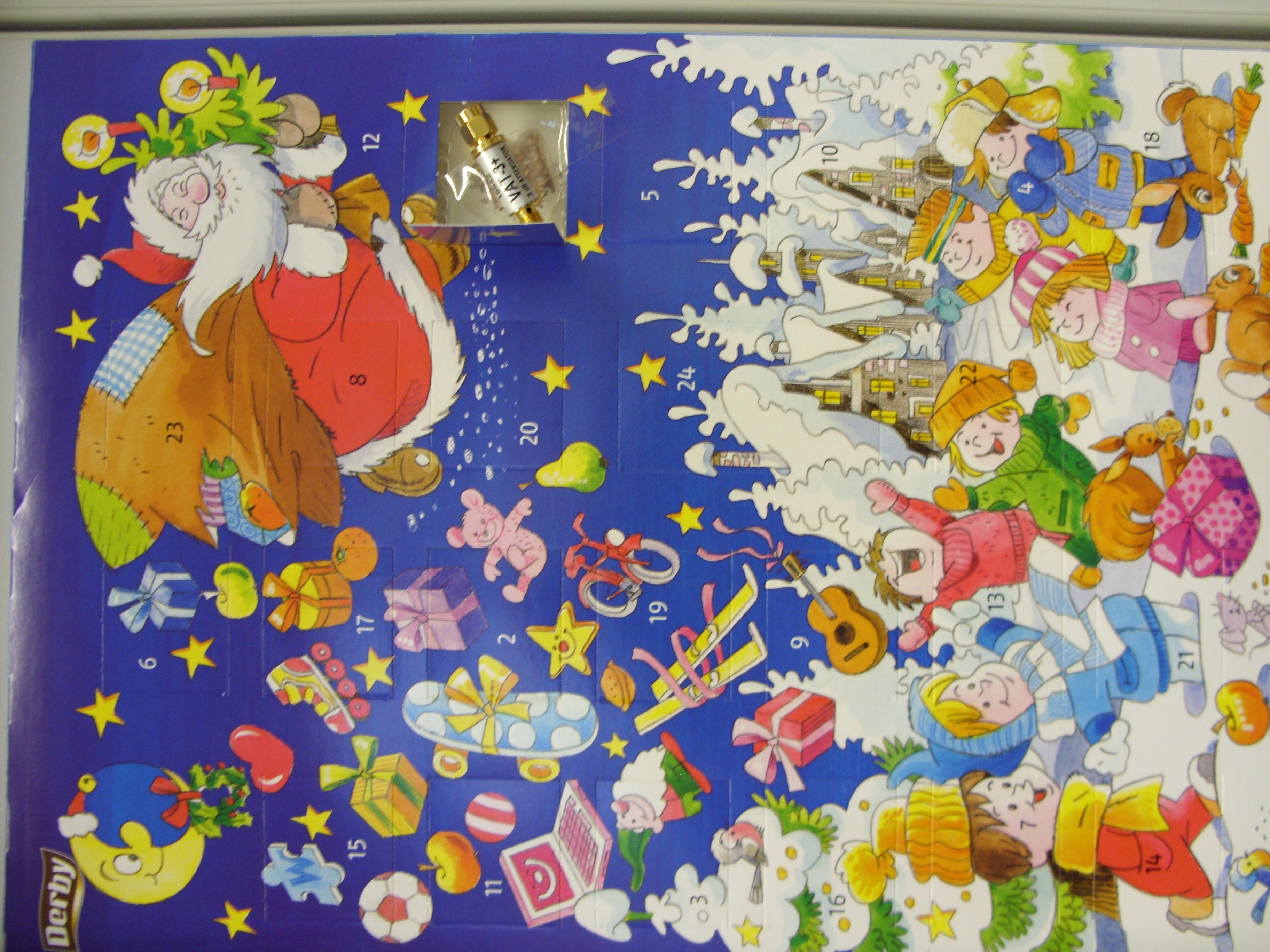 Was habt ihr so in euren Adventskalendern drin? Vieleicht habt ihr ja einen Adventskalender von Milka, Haribo oder Kinder-Schokolade? Ich hab einen Adventskalender von Mini-Circuits! Ich hatte heute einen 3dB Abschwächer drin. Mal sehen was noch kommt...