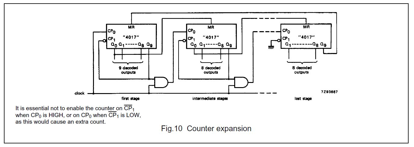 Ich möchte für Weihnachten ein Lauflicht mit mindestens 60 LEDs bauen. Ausser einer einstellbaren Geschwindigkeit soll die Schaltung noch einen "Start" und einen "Reset"-Button haben. Gedacht hab ich mir das mit mehreren kaskadierten 4017ern und einem NE555 als Taktgeber. Die Schaltung zur Kaskadierung der LEDs hab ich aus dem Datenblatt übernommen, siehe Anhang. Jetzt hab ich aber alle 8 LEDs einen 4017er zu setzen.... für eine Lichterkette doch etwas "aufwändig". Ich hab mir auch schon überlegt einen ATMEGA128 zu nehmen (hätt ich noch in der Kiste) und dessen ca 40 Ausgänge zu nehmen und sie zu multiplexen... also die ersten 30 LEDs mittels einem Pin zu enablen, die anderen mittels zweitem Pin.... Habt ihr noch eine andere Idee / Schaltung parat? Wlechen Treiber nehm ich für die LEDs? Sie ziehen ca 20mA.... Jeweils einen Transistor? Oder gibts da Arrays? Danke für die "Anstuppser", keine Angst, bin 41, ist keine Hausaufgabe ;-)
