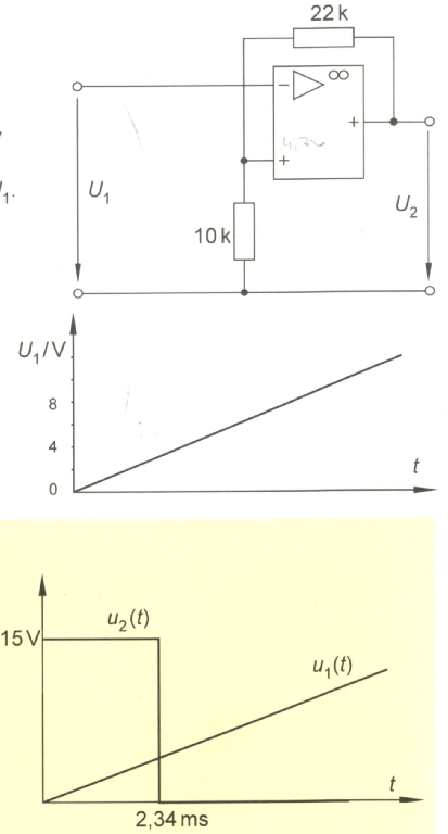 > Du hast natürlich vollkommen recht, der OP arbeitet hier als > invertierender Verstärker. Eher als invertierender Schmitt-Trigger (wegen der Mitkopplung). Die Schaltschwellen liegen bei ±4,7V.