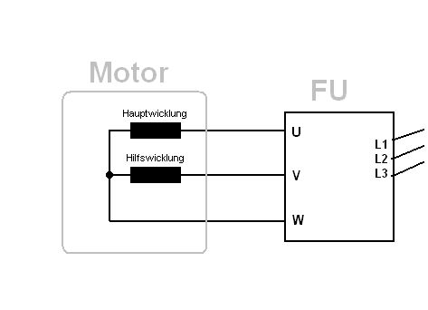 Hallo! Ich habs heute bei uns in der Arbeit/Ausbildungswerkstatt ausprobiert. Dort haben wir ja ein paar FUs. Einfach die drei Anschlüsse an die drei FU-Ausgänge gelegt, fertig. Der FU hat wirklich nicht gemeckert, die Nennspannung hab ich halt auf 230V und den Strom anders eingestellt. Läuft wie Sau. Auch mit mehr als 50 Hz! Stefan