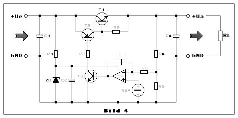 Mir ist heute ein Prinzipschaltbild über den Weg gelaufen, das ich recht bemerkenswert fand: https://www.elektronik-kompendium.de/public/schaerer/bilder/kdarl2_4.gif Es stammt aus dem Elektronik-Kompendium von Thomas Schaerer: https://www.elektronik-kompendium.de/public/schaerer/kdarl2.htm und ist als Bild 4 ganz weit unten zu finden. Besonderheit: Die Ausgangsspannung kann frei gewählt werden, etwa 20-60V oder mehr, da der OpAmp nicht mehr diese Spannung abkönnen muss. Und wenn man sich einen OpAmp für 5V aussuchen kann, hat man eine Riesenauswahl an Präzisionstypen mit Offset im im µV Bereich und Drift im nV Bereich. Nur mal als Beispiel: http://www.mouser.com/ds/2/389/tsz121-957398.pdf Und dann die komplementäre PNP-Darlingtonstufe, die hier bereits als vorteilhaft bezüglich Regelverhalten angesprochen wurde. Vielleicht habe ich ja etwas übersehen, was dieses Konzept ins abseits stellt. Warten wir mal ab, was die Experten dazu sagen.