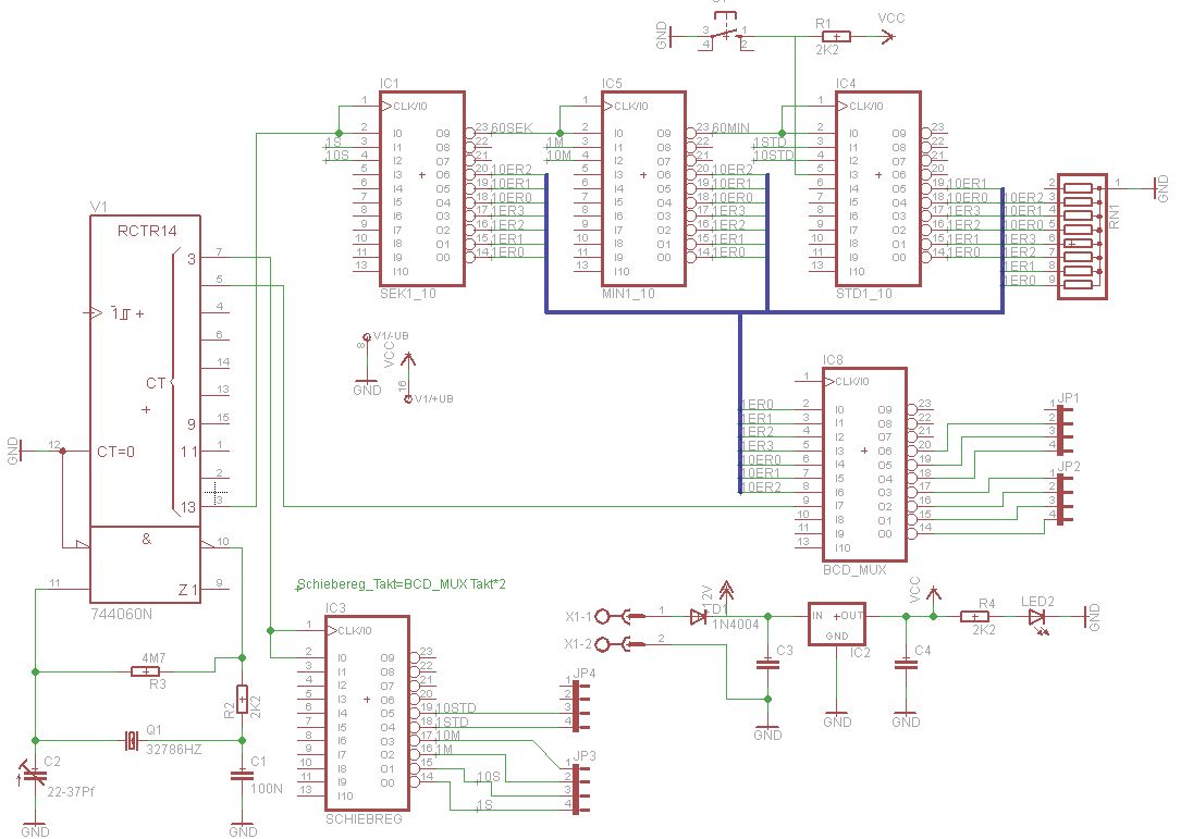 Hallo Ich wollte schon immer mal eine GAL basierende Digitaluhr bauen. Sie soll mittels Multiplexing arbeiten und wie für eine Uhr üblich die Zeit anzeigen. Nun habe ich Probleme damit die GAL Ausgänge als Tristate definieren und gleichzeitig die Uhr zählen zu lassen. Ich nutze um die Funktionsgleichungen Codieren zu lassen das Programm ENQ2JED Angenommen es werden diese Gleichungen vorgegeben q0 := /q0 q0.trst = 10S * 1S Dann wird q0 Niemals gesetzt. Warum? Ist das GAL nur in der Lage einen Takt aufzunehmen wenn der Ausgang auf Ausgabe geschaltet ist? Wenn ja, wie kann es dennoch zum zählen gebracht werden? Denn wen nur q0 := /q0 angegeben wird halbiert es den Takt.