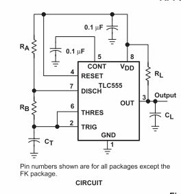 Hallo hab folgende Frage zum Tlc555cp. Ich will als Ausgang einen Rechteckimpuls haben. Lo und Hi sollen dabei gleich lang sein. da der Kondensator Ct ueber ra und rb geladen wird und ueber rb entladen wird kann man, wenn ich es richtig verstanden habe die Lo und Hi Zeit darüber einstellen. meine Frage ist nun ob ich einfach ra weglassen kann damit beide Zeiten gleich lang sind. vielen dank schon mal für die Antworten Felix