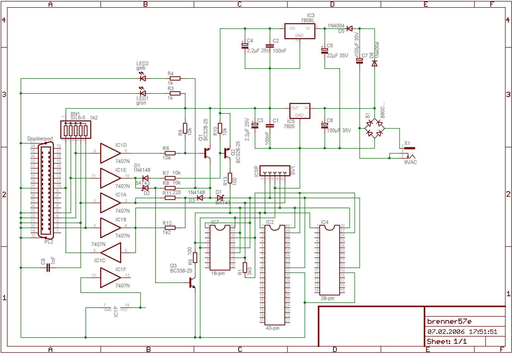 Hallo, wie kommt man denn bei dem Transistor Q2 auf die Werte der Vor- und Pullup-Widerstände? http://www.sprut.de/electronic/pic/projekte/brenner5/brenner57e_sch.gif Ich nehme mal an Ube = 0,7V (die würden dann an R10 anliegen) hfe ist laut Kurve im Datenblatt vom BC328-25 ca. 120 bis 100mA. Weil der Basisstrom hier ja an Basis/Pullup aufgeteilt wird, ist so eine einfache Berechnung per Ic = hfe * Ib für den Basiswiderstand nicht so direkt möglich. Desweiteren habe ich keine Erfahrungswerte, was die Höhe von Ic betrifft (bzw. wieviel der PIC beim Programmieren am MCLR-Pin zieht). Könnte jemand vielleicht eine praxisnahe Überschlagsrechnung für die Bemessung der Widerstände durchführen? Danke & Gruß, Daniel