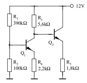 Wenn SolvElec recht hat: Basis Q1 1,96 V Basis Q2 8,33 V Spannung über R4 1,36 V Spannung über R5 7,73 V hans