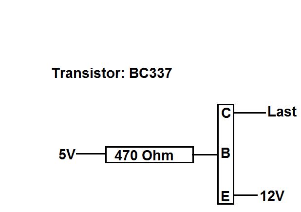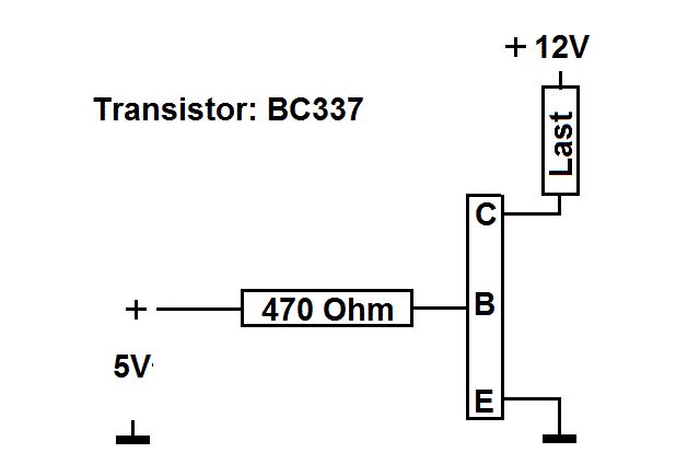 Hallo zusammen Mein Mc ist ein ATmega32 Mein Transistor ein BC337-40 Der lüfter braucht 12V und 300mA Die Schaltung hab ich von hier übernommen: http://www.mikrocontroller.net/wikifiles/0/0d/Transi2.gif Auf dem Bild hab ich die Freilaufdiode sowie die Stromversorgung des Mc vergessen einzuzeichnen, wär in Paint auch zu mühsam geworden...;) Doch die Schaltung funktioniert nicht, ich habe keine Ahnung wieso, ihr habt doch sicher Ahnung wieso;) Was mach ich falsch? Ich hoffe ihr könnt mir helfen und das es mir nachher klar ist;) Grüsse