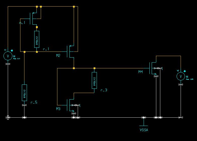 Hallo fang mal damit an: bei identischen Transistoren ist der Widerstand der SD-Strecke bei gleichem Gatepotential gleich. Die Schaltung ist etwas unglücklich Dargestellt. Die Gates und Sources der N-Fets und der P-Fets sind jeweils verbunden.