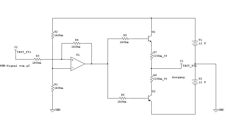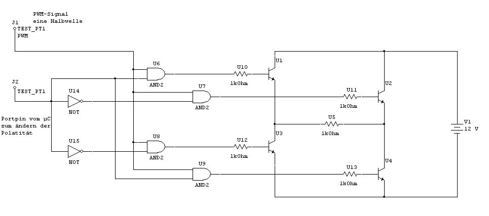 Hm, wäre auch eine Idee und würde den OP ja überflüssig machen. Aber das Problem auch bei meiner ersten Schaltung ist ja, dass die Transistoren im Analogbetrieb arbeiten, und somit bei größerer Last doch ziemlich warm werden würden. Deswegen wär es ja von Vorteil, wenn man eine diese ind Brückenschaltung direkt mit den PWM-Signalen ansteuern könnte.
