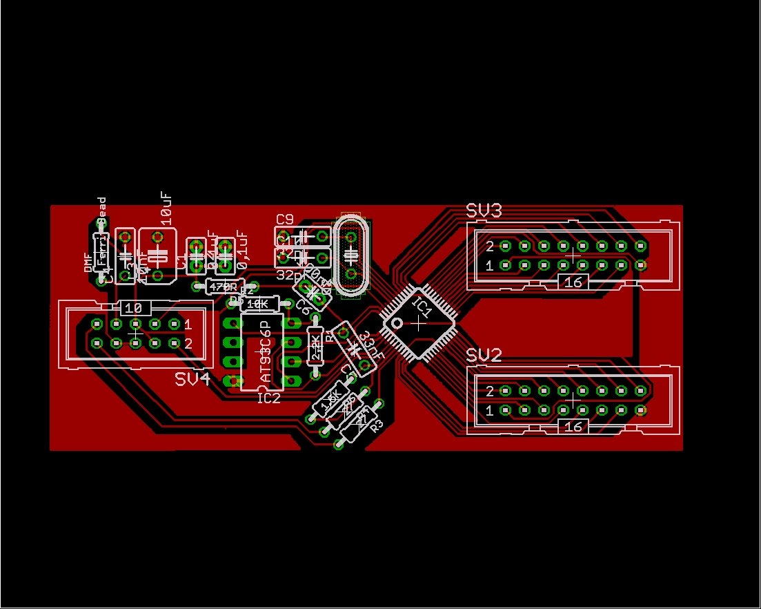 So, hier also auch noch mein Layout. hat ganz schön lange gedauert bis ich alle Verbindungen auf einer Seite hatte... Ich hab auch im Inet auf sonner russischen Seite oder so einen FT2232M zum nachbauen gesehen(also mit Layout etc.), der aber im DIL40 Design war und mit USB Connector und SMD Packages... MFG Manu