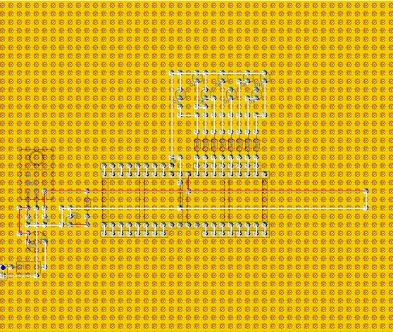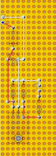 Hallo Ihr, ich versuche das Laborboard *1, zunächst, virtuell nachzubauen. Eine reale Umsetzung auf einer Lochraster Platine erfolgt in kürze, ich warte nur auf mein Fädelstift... Auf dem 2 Screenshots ist die Spannungsversorgung virtuell "aufgebaut". Bitte schaut einmal drüber und sagt mir, ob die Spannungsversorgung in diesem Format 5V liefern kann. Die rot eingezeichnetten Bahnen, auf der Rückseite sind V+, die weissen Bahnen entsprechen GND. Der blaue Punkt auf dem 2 Kontakten links dient zum Anlegen von V+. Vielen Dank im voraus, Ronny --- Ich arbeite mit Lochmaster 3.0 Demo. Ich habe noch Fritzing als alternatives Zeichenprogramm, dies hatte aber keine virtuelle Lochraster Platine... *1 http://www.das-labor.org/wiki/Laborboard