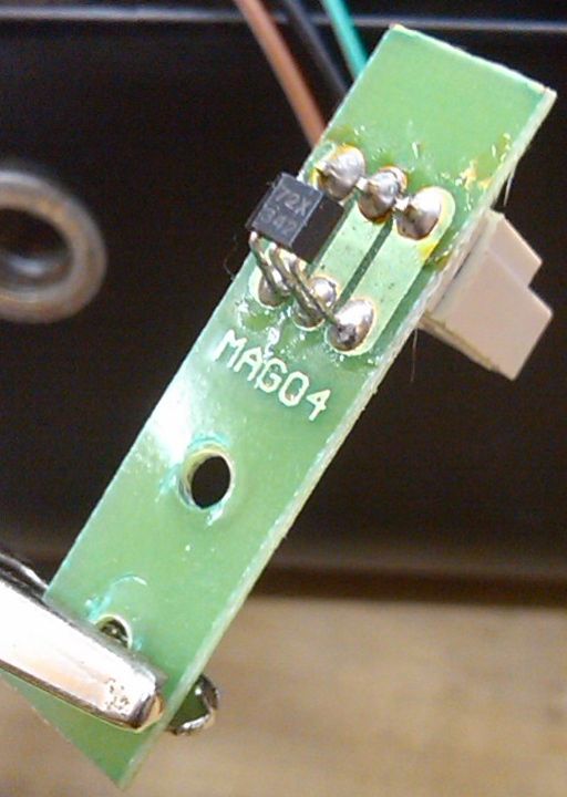 Hallo Forum, Ich brauche wieder einmal eure Hilfe. Wer kann mir sagen woher ich das folgende Bauteil bekomme bzw. um welches Bauteil es sich handelt. (Fotos siehe Anhang) Es dient(e) zur Referenzierung einer drehenden Scheibe in einem Eurolite TS5 Scanner (Lichttechnik). Das Gegenstueck auf der Scheibe ist ein kleiner Magnet weshalb ich vermute das es sich um einen Magnetsensor handelt. Bin fuer jede Hilfe dankbar. Google wurde bereits erfolglos befragt. Mit besten Grueszen Stefan