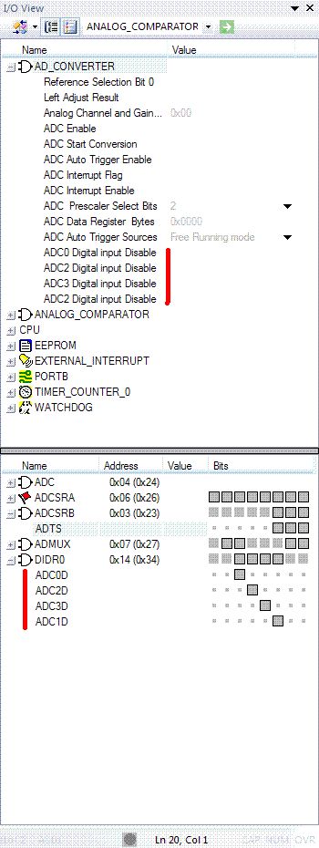 >Und wieso Taucht im AVR Studio ADC2 Digital Input Disable 2 mal auf?
