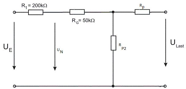 Vergiss das Bild iOP3. Du musst den Innenwiderstand nicht wirklich wissen. Dein Verstärker hat in deiner Anwendung genügend Verstärkunsgreserve um intern soviel Extraspannung zu erzeugen, dass am Ausgang exakt die gewünschte Spannung erscheint. Verstärkungsreserve = Verstärkung_ohne_Gegekopplung/außen_eingestellte_Verstärkung Die Verstärkung ohne Gegenkopplung liegt bei ca. 10000 bis 1000000 für Gleichspannung. Allerdings nimmt die linear mit der Frequenz schon ab wenigen Hz ab.