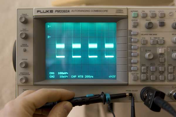 2khz, 600mv), einmal mit einem Testec LF Probe (auf 10:1 gestellt) und