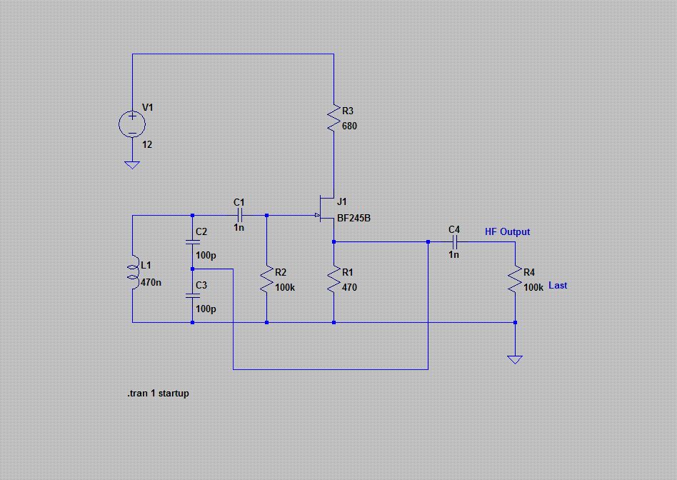 Hallo, ich experimentiere grade etwas mit HF herum. Besonders die Oszillatoren finde ich sehr interessant. Jetzt trifft man ja oft diese Colpitts-Oszillatoren an, bei denen der Schwingkreis aus einer Induktivität und zwei parallelen Kondensatoren besteht, die Rückkopplung führt an den Mittelabgriff zwischen den Kondensatoren. Jetzt habe ich selber was zu basteln versucht, und in LTSPice funktioniert das ganze auch, aber meine Frage trotzdem: ergibt das einen brauchbaren Oszillator?