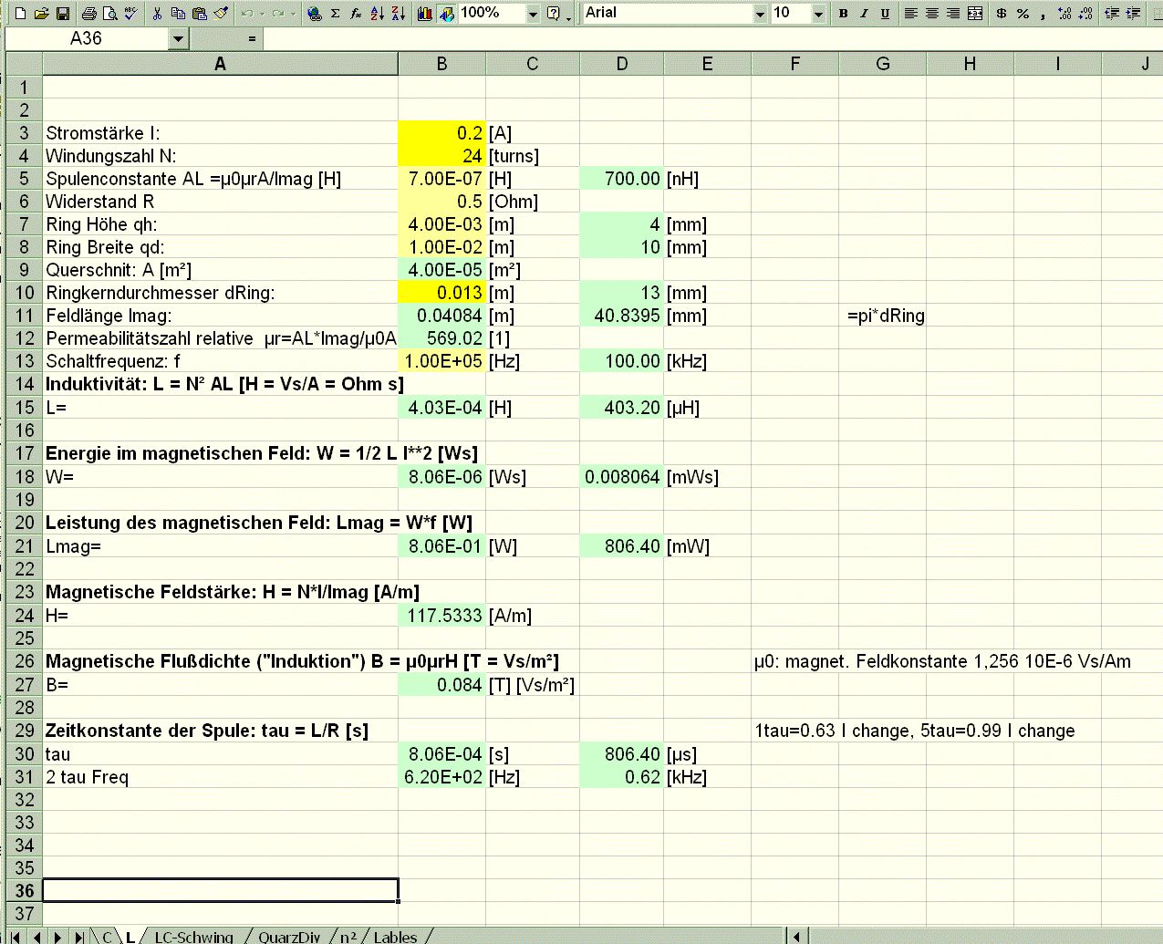Zur Berechnung der spulenrelevanten Parameter habe ich mir obiges