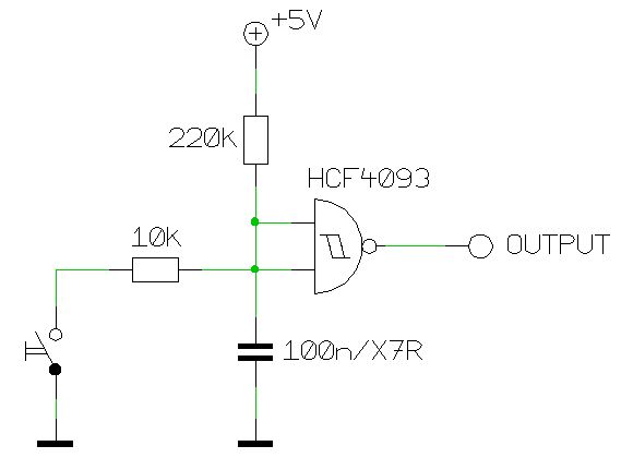 Hallo Frank, probier mal das im Anhang. Ein RC-Glied kann durchaus Sinn machen, um EMI zu unterdrücken. Eleganter ist natürlich eine Software-Entprellung. Kai Klaas