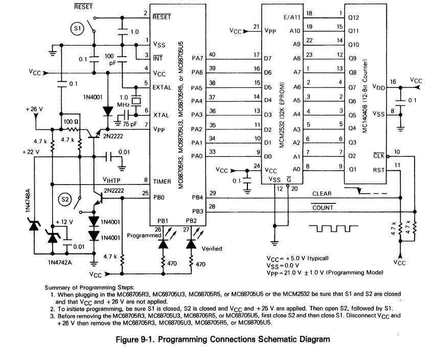 Jörg, http://matthieu.benoit.free.fr/cross/data_sheets/AN857_REV2.PDF Das ist Rev2. von dem programmer, wie du sehen wirst geht auch 2764 (A12 auf GND). Und so können auch andere grossere EPROMs/EEPROMs angeschlossen werden. > Mir sind durch einen Zufall ne ganze Menge alter MC68705U3S in den Schoß > gefallen samt fertiger Beschaltung mit ADC und 4 7-Segmentanzeigen. Eins würde ich gerne dir abkaufen.