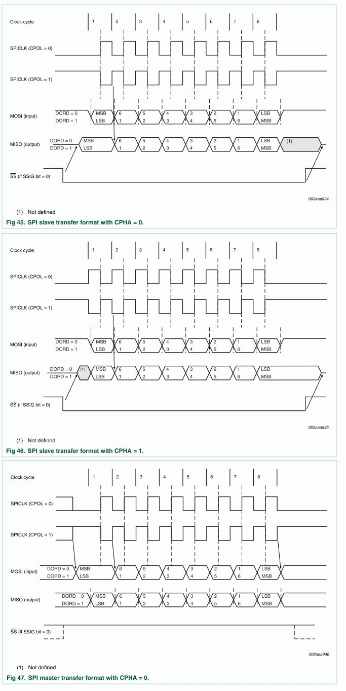 Xxx Xxx schrieb: > Aber wie funktioniert das? > Wenn die SPI dem DAC sagt, dass er die Daten liefern soll, dann wird das > Byte eingelesen. Wenn der µC das Byte hat, dann ist doch fertig, oder > nicht? Und beim 2. holen holt er sich dann weider ein Byt, was aber von > einem neuen Messwert stammt, oder? > > Oder "unterhalten" sich µC und DAC vor der Übertragung und tauschen sich > aus wie viel Bytes übertragen werden bzw. wie viel Byte es > zusammenhängend sind? 1.) SPI ist nicht gleich SPI. Einige µC beherrschen viele Betriebsarten. Beispiel: P89LPC933 (siehe *.gif) 2.) Slaves & Masters müssen auf das selbe Protokoll eingestellt werden. 3.) Immer RTFM. Ohne geht es nicht.