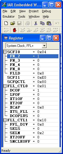Hallo nochmal, ich komm jetzt echt zum verzweifeln. kann mir mal bitte jemand sagen, welchen Takt ich hier(siehe Anhang) jetzt eingestellt habe ? Ich habe an LFXT1 den 32kHz Quarz dran und an XT2 einen 8 MHz Quarz. wenn ich nun den DCO abschalte, hat doch FN_2 keine Funktion mehr, oder ? jedoch läuft die Kiste aber (sichtbar) schneller als bei FN_2 = 0. Läuft der jetzt trotzdem wieder mit dem DCO aber dann etwa mit 12 MHz ? ich versteh das nicht so ganz... hab leider auch keinen Frequenzzähler oder Oszi und das nachzumessen. mfg Thomas