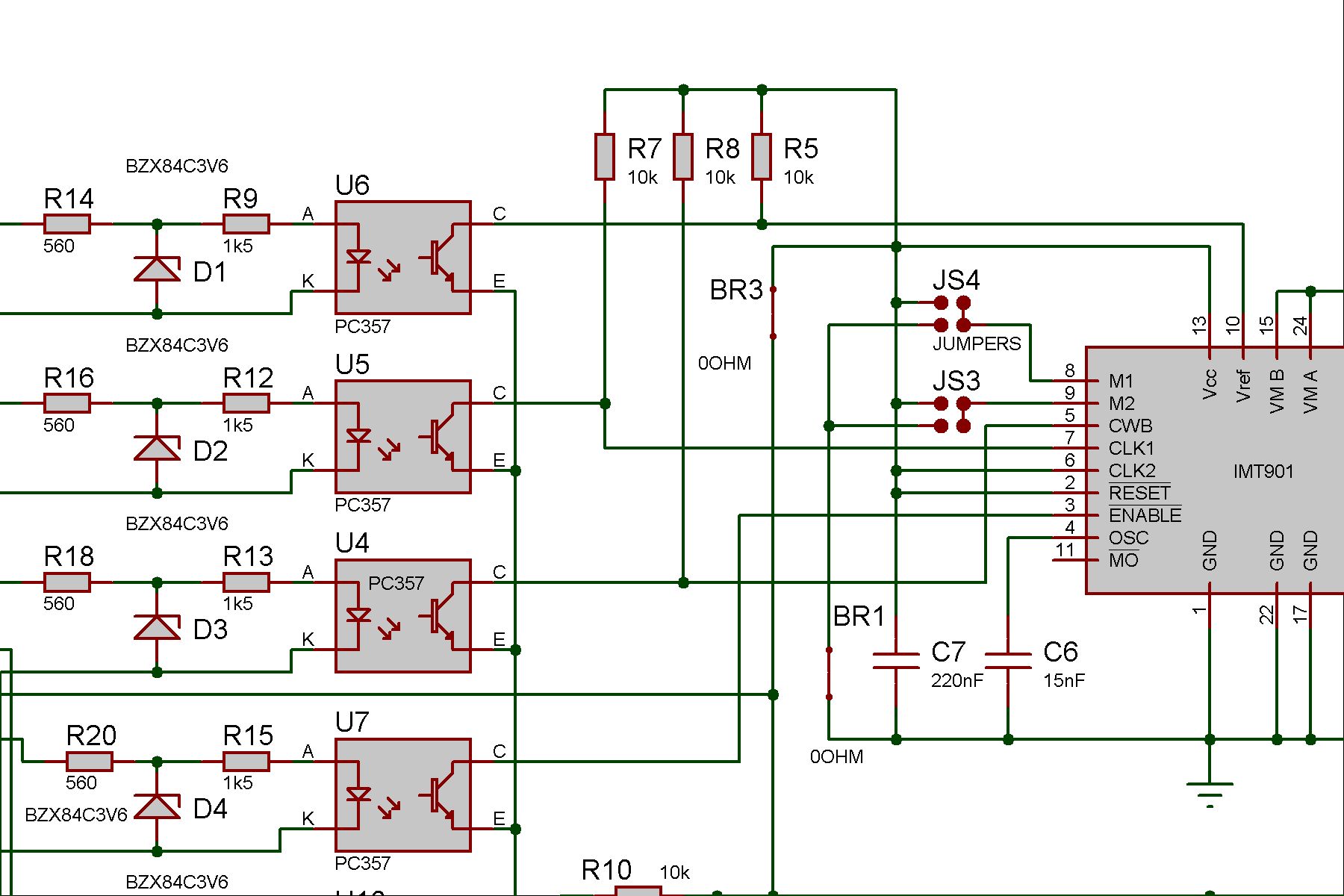 Hallo zusammen, vielleicht kann mir mal wieder jemand weiterhelfen. Ich möchte eine Schrittmotorendstufe auf Basis des IMT901 mit einer SPS ansteuern. Das Problem ist, dass die SPS nur 24V Ausgänge besitzt und die Logikeingänge (Takt, Richtung) des IMT901 mit 5V arbeiten. Hat jemand eine Idee, wie man das Problem lösen könnte? Ich bin um jeden hinweis dankbar. Schöne Grüße Andi