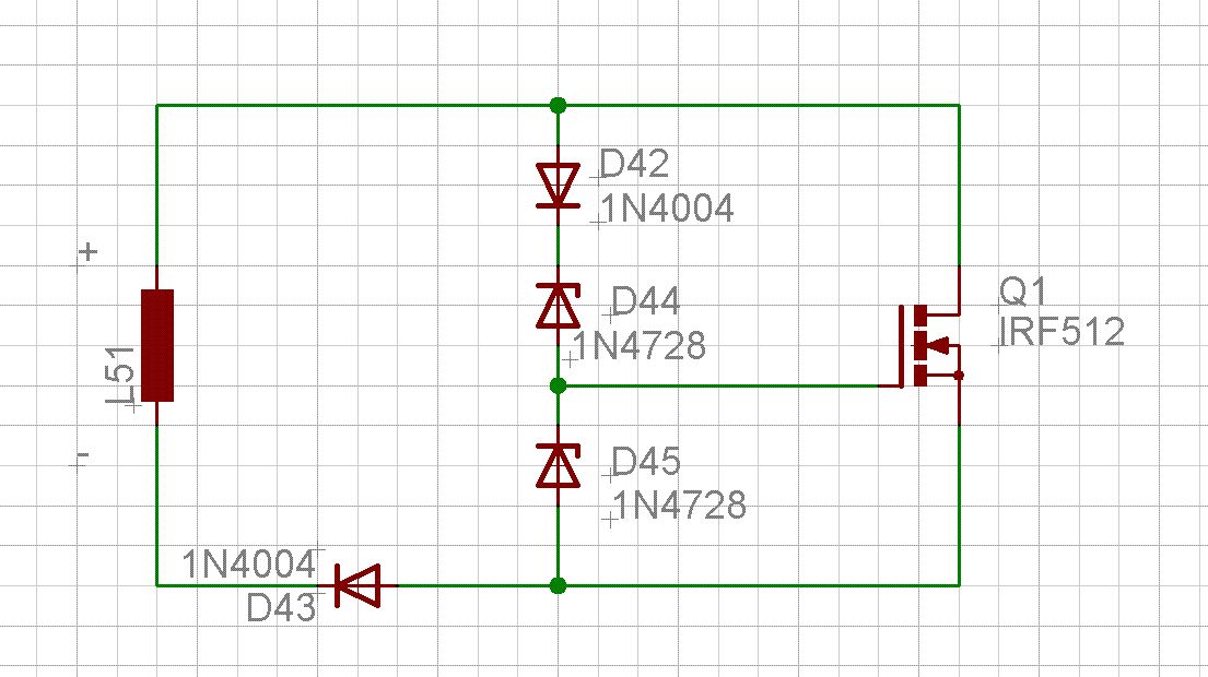 Anbei ein Schaltplan, der meine Frage näher erläutert und zeigt, wie die Spule (wirkt in diesem Fall als Generator) den LSS sieht. Nun weiß ich nicht, ob ich die externen Zener-Dioden benötige oder der LSS des Bausteins BTS7810K das active clamping übernimmt? Das einzige was ich im Datenblatt gefunden habe, ist die "drain-source break down voltage" von 55V, aber keine Angaben über die Energie, die er aufnehmen kann. Grundsätzlich ist der Baustein ja für Ansteuerungen von DC-Motoren gedacht... lg mario