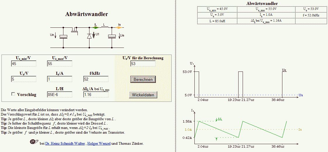 > Die Spule hat 85 µH statt 100 µH Vor allen Dingen muss sie den maximalen Strom aushalten können ohne in Sättigung zu gehen, beim LM2576HV also im ungünstigen Fall 7.8A ! Es kommt NICHT auf den am Ausgang gezogenen Strom an. Beim Einschalten wird erst mal der Ausgangselko "volle Pulle" aufgeladen.