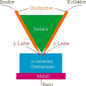 OK Der Germanium Spitzentransistor ( Feder drückt Spitze auf Germaium platte )