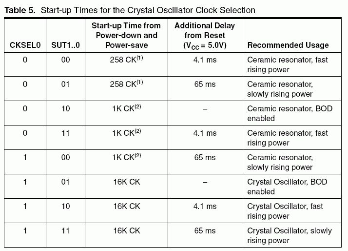 Ok. Was bedeutet "Start-up Times for the Crystal Oscillator Clock Selection? Ich kann damit nichts anfangen.