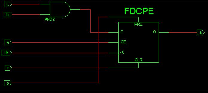 1 | a <= '0' when b='1' else c and d when e='1' and rising_edge(clk);