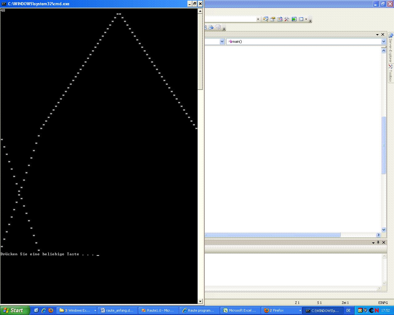 Ich muß mit hilfe von for-schleifen eine Raute programmieren die