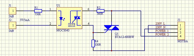 Hallo, ich bin auch gerade dabei sowas zu bauen. Da ich Relais hasse, habe ich mich für eine Variante mit Triac entschieden (siehe Anhang). Der Triac kann so etwa 800ma bis 1A ohne Kühlkörper schalten. Mein Bräuner hat 4x15W, also insgesamt 60W und der Triac wird nichtmal annähernd war. Funktioniert sehr gut diese Variante. Gruß Thorsten