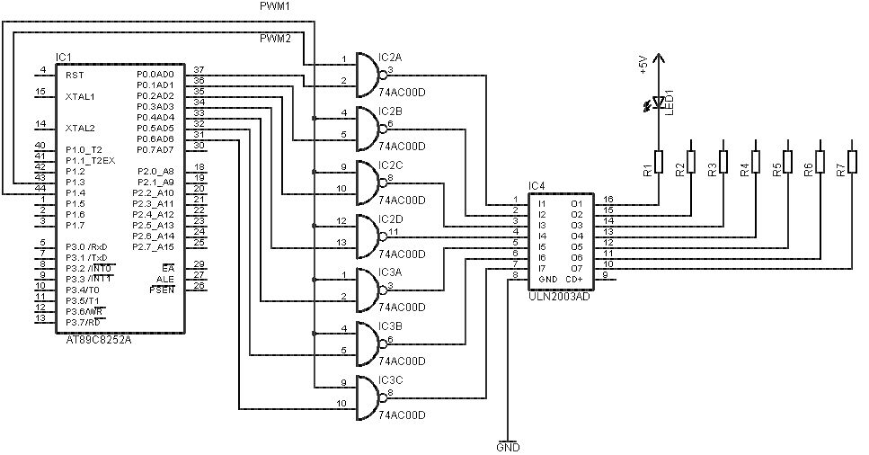 Der ist schon nicht schlecht, aber leider auch recht teuer :-( Und eine parallele Ansteuerung würde ich ja schon vorziehen, sind ja nur 8 LEDs. Mir schwebt halt so ein Baustein mit 8 Ein/Ausgängen vor der noch einen Pin hat mit dem man die PWM realisieren kann. So in der Art wie ein L293-Treiber... Oder gibts da wirklich nix.