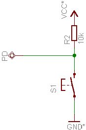 >Wer sagt dir das? >Ein Eingang am AVR ist erst mal nur das: ein Eingang. Ich bezog mich auf das Beispiel im AVR-Tutorial. Dort steht: "Ohne diesen Pullup-Widerstand würde ansonsten der Pin bei geöffnetem Taster in der Luft hängen, also weder mit Vcc noch mit GND verbunden sein." Laut Schatskizze würde der Pin aber eben doch mit Vcc verbunden sein. Dass man einen Kurzschlussstrom vermeiden will, ist verständlich, aber darauf wird nicht hingewiesen. Es wird immer davon gesprochen, der Pull-Up sei nötig, um bei offenem Schalter den Eingang auf Vcc zu ziehen.