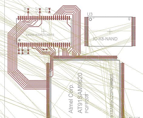 Hallo Leute, bin grad zum ersten mal an einem Board für einen AT91SAM9260. Damit verbunden hab ich auch das erste mal mit sdram zu tun. Hab nun mal ein paar adress- und datenleitungen geroutet und wollte kurz nachfragen, ob ich lieber gleich aufhören soll oder ob das so laufen könnte und es sinn macht weiterzumachen. Würde mich freuen wenn einer der Profis hier einen kurzen Kommentar abgibt. Grüße!