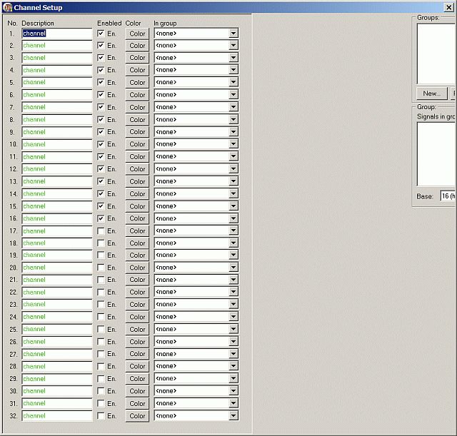 Nun habe ich noch was an der softigen Ware zu meckern ;-) Es ist eigentlich in der Digitaltechnik üblich, dass Leitungen Busse usw. mit 0 (Null) beginnend nummeriert werden. In der Software wird mit Ch1 begonnen. Das ist blöd, übliche Datenbusse in µC-Schaltungen beginnen auch mit Null, muss man also in Gedanken immer eins zuzählen. Beispiel: Ich klemme Ch1-8 an den Datenbus 0-7 bzw. bei Adressbuss von 0-15 an Ch1-16. Wenn Adressleitung 13 spinnt, muss ich bei Ch14 nachsehen bzw. umgekehrt. Ist nun kein Beinbruch, sollte aber bei nächstem Update geändert werden. Oder man kann das selbst irgendwo auswählen. Old-Papa