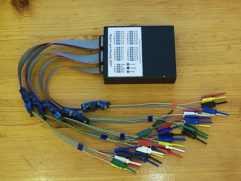 Das war ein wirklich geniales Konzept: 32 Kanäle, 100 MHz Abtastrate, mit einem super Preis-Leistungs-Verhältnis. Schade dass die Software nur mit Windows läuft (mit Linux und Wine ist das nach meiner Erfahrung eher unzuverlässig). Sigrok hat zwar mal damit angefangen, aber nie fertiggemacht https://www.mikrocontroller.net/articles/Minila_Version_MockUp#Sigrok https://sigrok.org/wiki/MiniLA_Mockup.