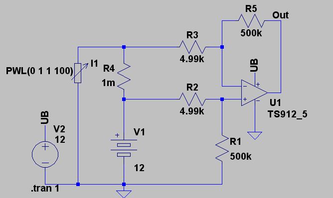 @Markus: Was soll denn das sinnlose Rumgehacke auf der Schaltung? Wenn du der Meinung bist, dass sie nicht funktioniert, könntest du ja wenigstens schreiben, warum. Der einzige grundsätzliche Fehler, den ich erkennen kann, sind die vertauschten OpAmp-Eingänge. Das hat aber oben Manfred von Antenne schon geschrieben. OP2 ist überflüssig und kann weggelassen werden. Er beeinträchtigt aber die Funktion der Schaltung nicht. Auf jeden Fall sollte am Ausgang von OP1 eine Spannungsbegrenzung auf 5V vorgesehen werden. Im einfachsten Fall ist das ein Widerstand von etwa 12kΩ in der Leitung zum ADC-Eingang, der die im Controller sowieso schon vorhandenen Begrenzungsdioden schützt. Den Ablgleichwiderstand hätte ich nicht an R1, sondern an R3 oder R4 gemacht, da damit der Offset von OP1 kompensiert werden kann, ohne gleichzeitig die Verstärkung zu ändern. Das ist aber eher Kosmetik. OP1 sollte ein Typ mit geringer Offsetdrift sein. Da gibt es deutlich bessere als den TS912. Tendenziell hätte ich die Schaltung zwar auch so wie Steffen Warzecha aufgebaut, weil man da keine exakt aufeinander abgestimmten Widerstände braucht. Nach diesem Prinzip arbeiten auch viele integrierte Strommessschaltungen. Aber sooo schlecht, wie hier behauptet wird, ist die Schaltung von Dennis auch nicht. Dass sie auch nach dem Vertauschen der OpAmp-Eingänge nicht funktioniert, ist bloß eine Vermutung von Markus, da Dennis seither kein Feedback mehr gab. opv schrieb: > Welcher OPV? Diese Schaltung funktioniert leider nicht mit jedem... Jeder OpAmp mit Rail-to-Rail-Input und geringer Offsetspannung sollte gehen.