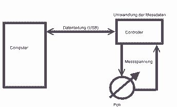 Ich glaube er wollte nicht den Lautstärke Ponti steuern sondern mit dem Ponti Windows steuern, oder? Wenn ja, ist dies "einfach" mit einem ADC, also zur Widerstandsmessung. Die gemessenen Daten sollen wenn ich es richtig verstanden habe dann an den PC übertragen werden, und das per USB. Siehe ADC http://www.mikrocontroller.net/articles/AVR-Tutorial:_ADC Wenn du dich ausreichend mit der Programmierung von uCs beschäftigt hat könnte dein Versuchsaufbau ungefähr so aussehen wie im Anhang, also zur Widerstandsmessung, daher USB kommt dann noch dazu. Da empfehle ich dann später V-USB, aber dafür muss man sich schon mit Mikrocontrollern befasst haben und etwas C können. Gruß, Ferdinand