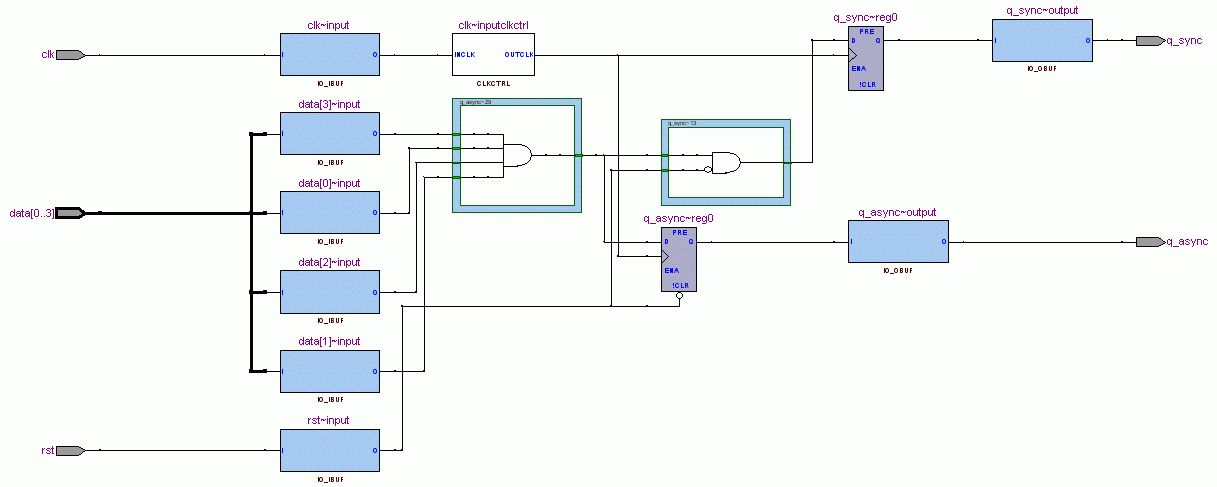 > Ich habe dazu mal ein einfaches Beispieldesign geschrieben.> Dabei habe ich das ganze im Cyclone 3 implementiert. Der hat> (vielleicht im Gegensatz zu Xilinx) keinen synchronen Reseteingang am FF.
