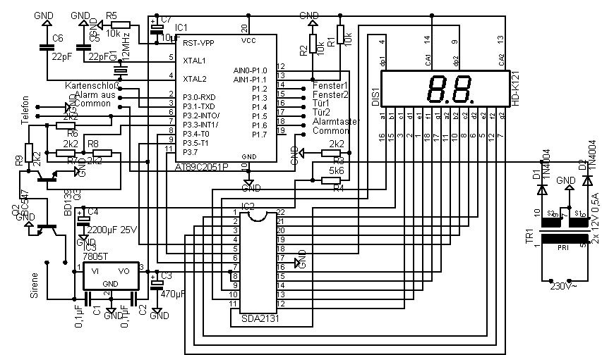 Ich hab hier nur die LED-Displayplatine von einem alten Betamaxrecorder hier liegen. Da ist der SDA2131 drauf. Einen anderen Display habe ich leider nicht. Ausserdem hat der AT89C2051 zuwenig Ports für ein LCD-Display, ausser für einen I2C-Display. Sind die 12MHz zu hoch für diese Schaltung, oder kann mans lassen?