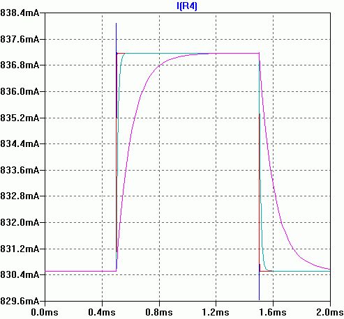 Hallo liebe Elektronikfachleute, mich beschäftigt momentan folgendes Problem: Ich benötige eine Konstantstromsenke (KSS) für ca. 800mA. Die Schaltung soll relativ genau arbeiten und über einen großen Temperaturbereich funktionieren. Ich habe deshalb auf einen temperaturkompensierten TLV431 als Referenz zurückgegriffen und die abgebildete Schaltung aufgebaut. Hier eine etwas genauere Erklärung: - Die KSS wird aktiviert über den Transistor T8. Dieser zieht die Basis von T4 auf Masse und das Potential an R35 und R46 steigt damit auf VCC (ca. +20V). - Die Zenerdiode DZ5 dient lediglich dazu den TLV431 zu schützen, denn dieser verträgt lediglich 7V Differenzspannung zwischen Anode und Katode. - Der Kondensator C10=100nF soll das Einschalten der KSS etwas verlangsamen und auch die Regelung stabiler machen. - Mit dem Transistor T11 kann man den Strom der KSS nahezu verdoppeln, indem die Spannung am REF-Anschluss des TLV431 halbiert wird. An den Sense-Widerständen müssen demnach ca. 2,50V abfallen bis der TLV431 reagiert, anstatt 1,25V (--> I steigt auf ca. 1,60A). Laut Simulation in LTSpice funktioniert die Schaltung ohne Probleme. --> In der Praxis ist dies aber leider nicht der Fall! Ich habe die Schaltung gelayoutet und eine Prototypenplatine anfertigen lassen. Nach der Bestückung habe ich einige Tests durchgeführt, leider mit katastrophalem Ergebnis. Problem: Es kommt zu heftigen Schwingungen des Ausgangsstroms! Der Ausgangsstrom sollte eigentlich ca. 800mA betragen, jedoch schwingt dieser in der Realität zwischen ca. 300mA und 1,3A mit einer Frequenz von ca. 50MHz!!! Es liegt mit Sicherheit kein Bestückungsfehler vor, ... denn ich habe alles mehrfach kontrolliert und auch mehrfach aufgebaut. --> Es zeigt sich immer das gleiche Verhalten. Fragen: - Was haltet Ihr im Allgemeinen von dieser Schaltungsidee für eine derartige KSS. Ist in der Praxis mit Problemen zu rechnen? - Könnt Ihr mir erklären wieso es zu diesem Regelschwingen kommt und was man am sinnvollsten dagegen machen kann? --> Eine logische Erklärung mit einer strukturierten Vorgehensweise zur Problemlösung wäre für mich wirklich !sehr sehr! interessant. Beispiel: TLV431 schneller machen (wie?), MOSFET verlangsamen (wie?), weil (Begründung) ... Mögliche Lösungsansätze: Heute habe ich bereits mehrere kleine Modifikationen und Optimierungen an der Schaltung durchgeführt und es ist mir dabei auch gelungen die KSS zu stabilisieren (keine Schwingungen mehr). Diese !zwei! gefundenen Lösungsansätze sind mehr oder weniger durch herumprobieren entstanden und daher sehr fragwürdig. Ich kann das Verhalten nicht nachvollziehen und habe daher auch kein Vertrauen dazu. --> Es ist wirklich extrem wichtig, dass diese Schaltung in der Praxis zuverlässig und störungsfrei funktioniert (ohne Regelschwingen) und dies auch unter Berücksichtigung der möglichen Bauelementtoleranzen, Temperatureinflüsse, ... Ansatz 1: Das Weglassen von C10 bzw. die Reduzierung von C10 auf unter 20nF beendet das Regelschwingen. Ansatz 2: R37 auf 0Ohm reduzieren in Kombination mit einem 100nF Kondensator zwischen Gate und Source des MOSFET (einzeln bewirken diese Maßnahmen nichts, nur in dieser Kombination). --> Leider wird durch die Reduzierung von R37 auf 0OHM die oben beschriebene Funktionalität der Stromverdopplung über T11 unmöglich (wäre sehr schade)! Ich bitte euch um ausführliche und kompetente Antworten (bitte keine vagen Vermutungen äußern). Vielen Dank im Voraus Mit freundlichen Grüßen Bushracer