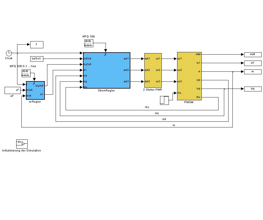Hi Zusammen, Ich versuche mich mal mit dem MicroController MPC555 und autogenerieter C Code(unter Matlab RTW Embedded Code) einen Permanent Magnet Synchron Motor(PMSM) zu regeln. Das ist Kaskade Regelung mit PI fuer Geschwindigkeit und fuer Stromregelung. Diese zwei Regelkreise haben unterschiedliche Abtastzeiten. Ich weisse nicht wie ich unter Matlab diese zwei Taske realisieren kann. In Simulink geht es einfach mit 2 Bloecke Pulse Generator. (sieh Bild) Meine Frage : Kann ich so fuer Embedded Code umsetzen ? Wie kann ich synchronisieren zwischen ADC und PWM ? Danke schoen im Voraus. Thanh