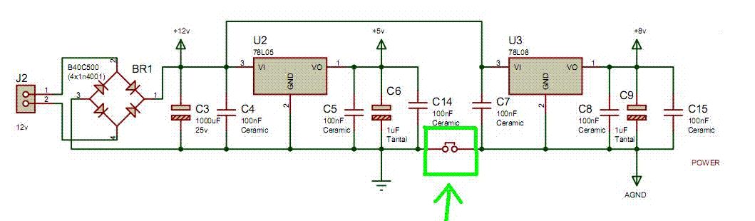 Marxon schrieb: > Vielen Dank für die schnellen Antworten! > Ich kann also die zwei Massen verbinden, sollte dann aber "analoge" und > "digitale" Masse möglichst immer am den Tantal Kondensatoren zu den > weiteren Bauteilen verbinden? Es geht nicht um Die Tantalkondensatoren an sich. Es geht darum dass alle Bauteile links von der Brücke ihre eigenes Massenetz haben und alle Bauteile rechts von der Brücke ihr eigenes Massenetz. Das also nicht der C9 mit seinem Masseanschluss direkt neben dem Masseanschluss auf derselben Leitung wie der mittlere Pin vom 7805 sitzt. Diese beiden Teilnetze werden dann nur an einem einzigen Punkt miteinander verbdunden.