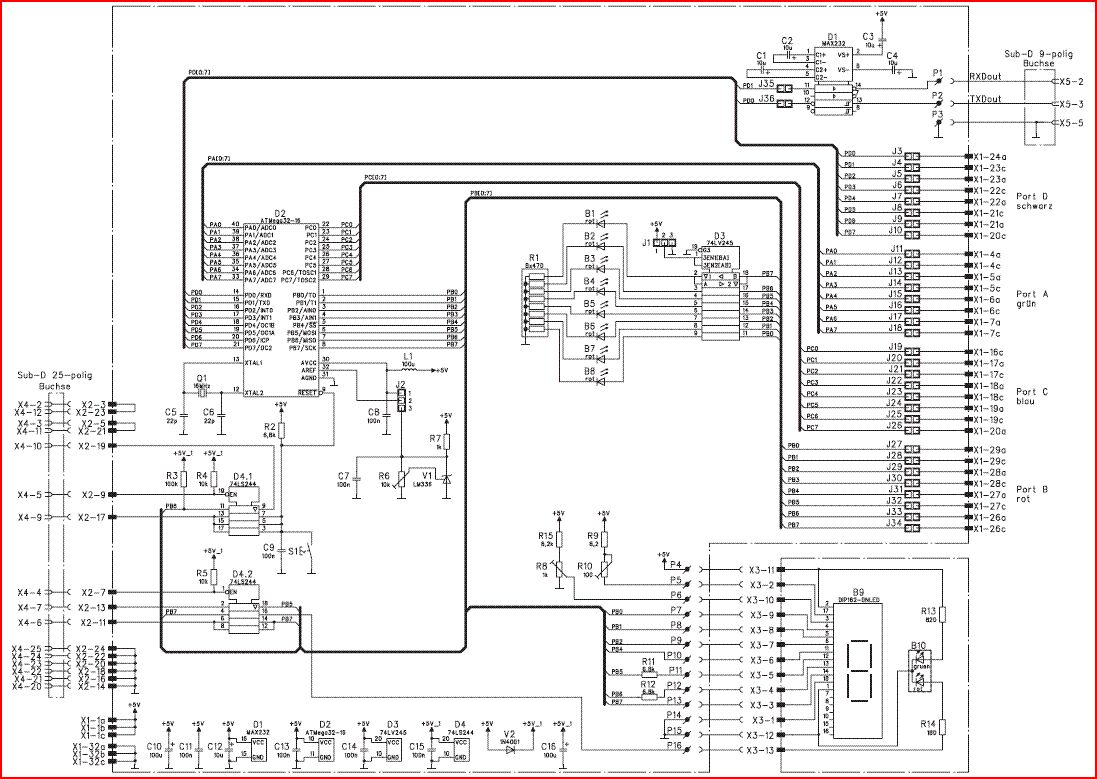 Hallo Leute, Ich habe von meinem Vater ein Atmega32 Board bekommen, das mal bei einer Systeminformatiker Prüfung verwendet wurde, den Schaltplan habe ich auch hochgeladen, allerdings ist bei mir statt einer 7-Segmentanzeige ein LC-Display angeschlossen. Meine Frage ist nun, ob ich dieses Board auch über die Serielle Schnittstelle programmireren kann, denn in der Aufbauanleitung steht, dass die 25 polige Parallele Schnittstelle dafür vorgesehen ist, in dem Fall müsste ich mir allerdings noch eine neue PC-Karte kaufen-.- Ich hoffe ihr könnt mir aufgrund des Schaltplans helfen :) Liebe Grüße Nils