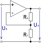 Das geht ja verdammt schnell! @ Reinhard: Spannungsfolger bedeutet doch, dass R2 = 0 ? Aber wie kann ich dann denn Verstärkungsfaktor einstellen? Werd die Widerstände mal vertauschen @ Martö: Ist mir schon klar an Ue hängt natürlich ein Shunt.