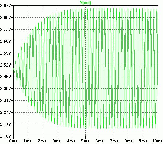 Hallo, ich hab es befürchtet. Diese erwähnte Schaltung kann ja nie funktionieren. Ich sehe ein schwimmendes 5V Supply. Das geht niemals! Der Minus-Anschluss muss auf Masse(GND). Angenommen du hättest Minus vom Supply in Wirklichkeit auf GND angeschlossen, dann hast du den Arbeitsunkt bei 0V. Das geht erstmal nicht. Bei Single Supply Versorgung muss du den Ausgang auf Ub/2 einstellen. Die Alternative wäre +5V und -5V Supply. Das hast du aber vermutlich nicht verfügbar.