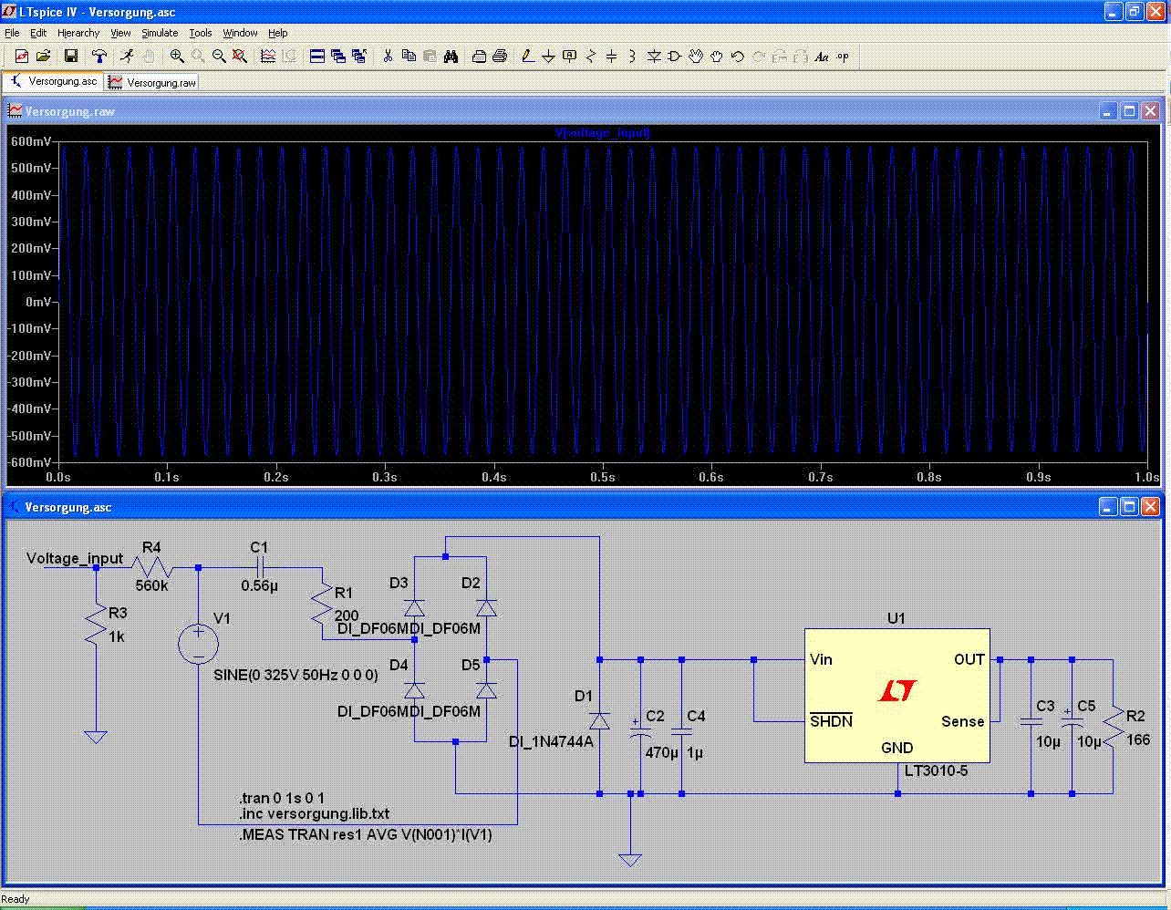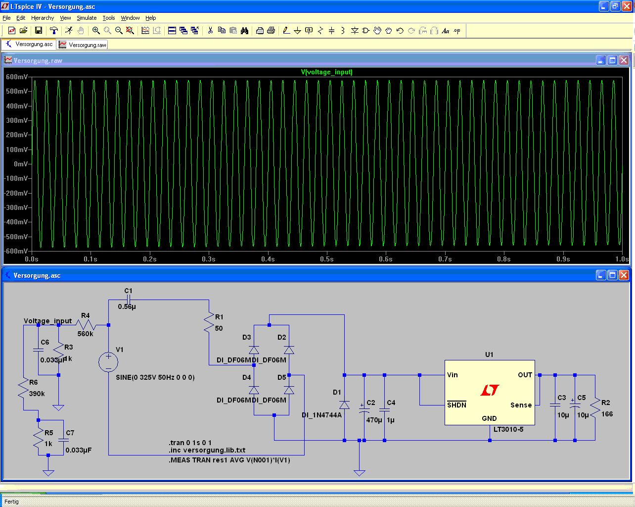 Hallo, ich möchte mit einem MCP3906 nach einem Brückengleichrichter eine 230V Spannung messen (Strom auch über Shunt). Problem ist jetzt ja nur, dass das Masse-Potenzial des MCP schwankt gegen die Netzspannung. Kann ich, da es sich ja bei den Eingängen um differenzielle Spannungseingänge handelt, direkt(also mit einem hochohmigen Spannungsteiler) gegen die Masse des MCP messen? Ich hänge mal ein Bild von meinem LTSpice Modell an. R2 ist dabei die Last (MCP3906 und uC), Voltage_input ist das was ich messen will und der Graph oben zeigt den Verlauf von Voltage_input an. Und das sieht ja mal nicht schlecht aus... Aber funktioniert das auch real? Grüße, Thomas